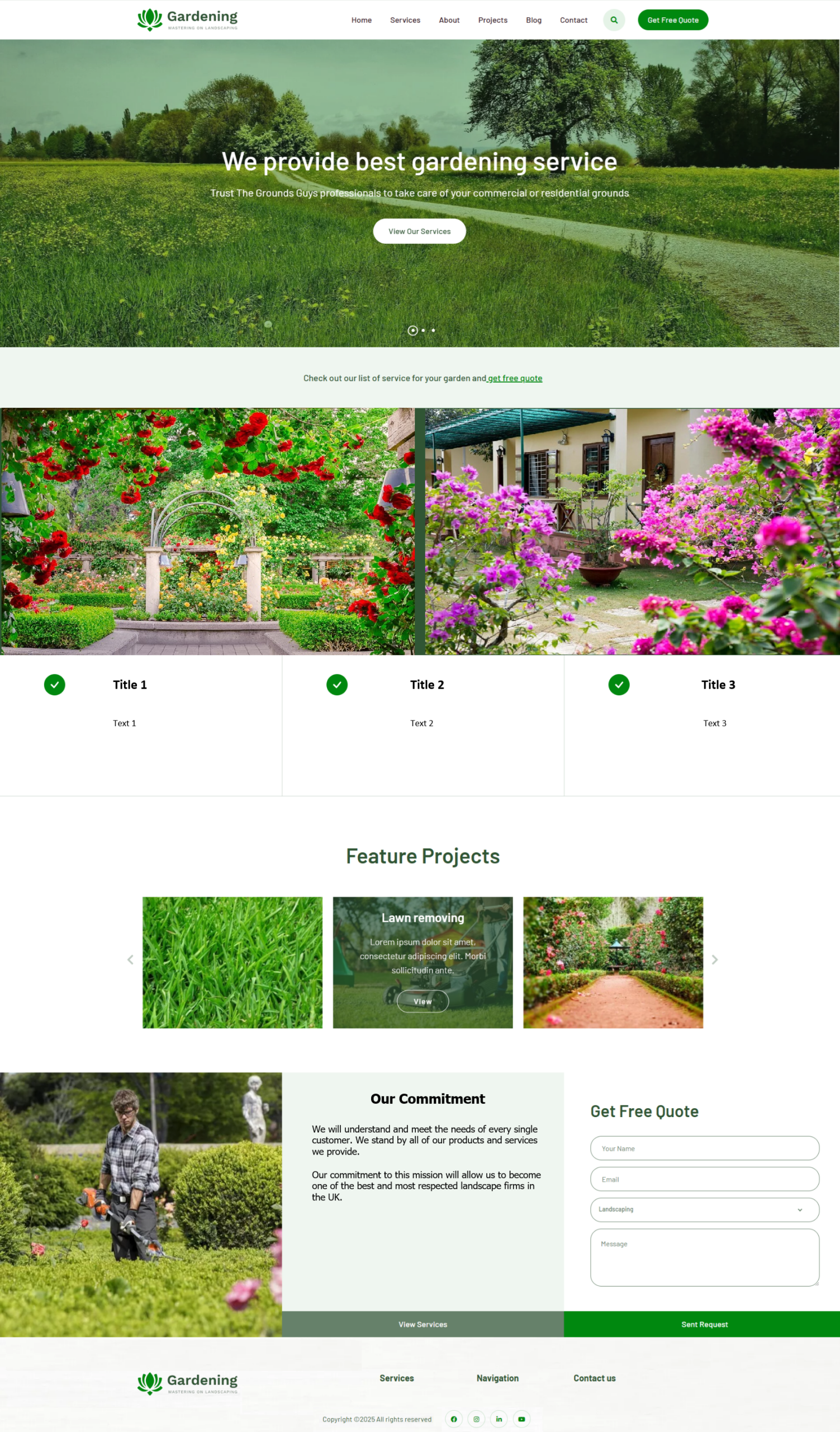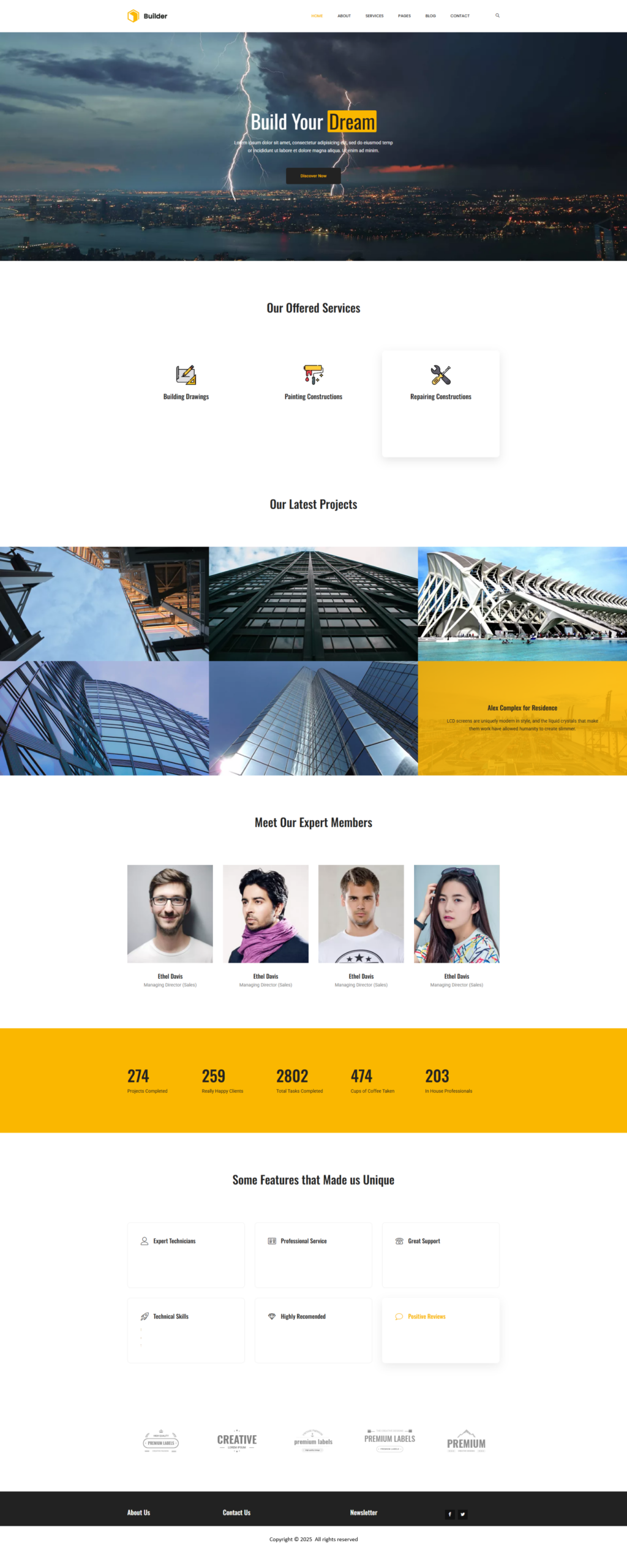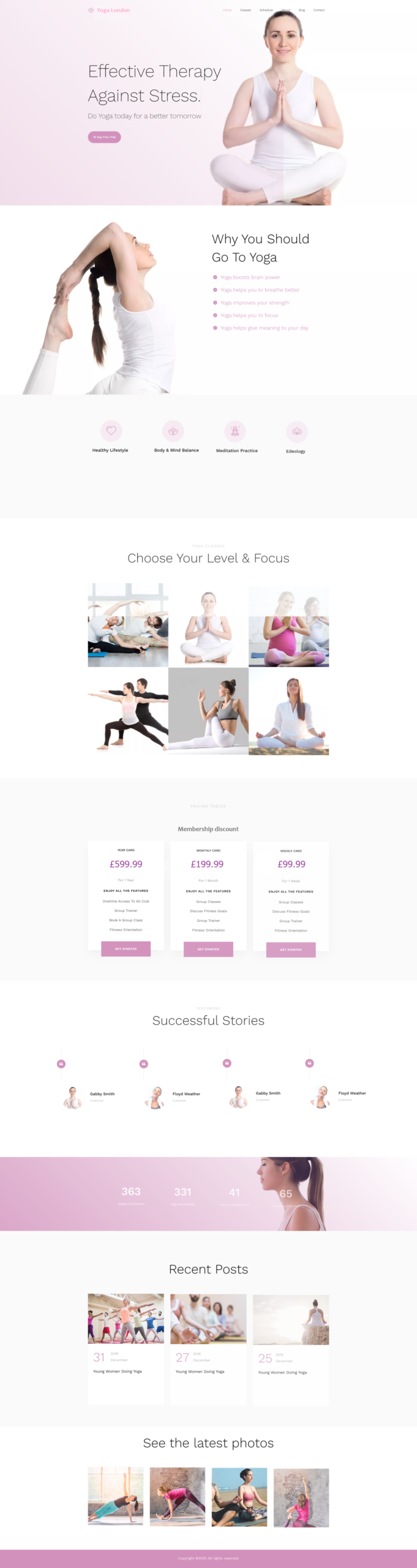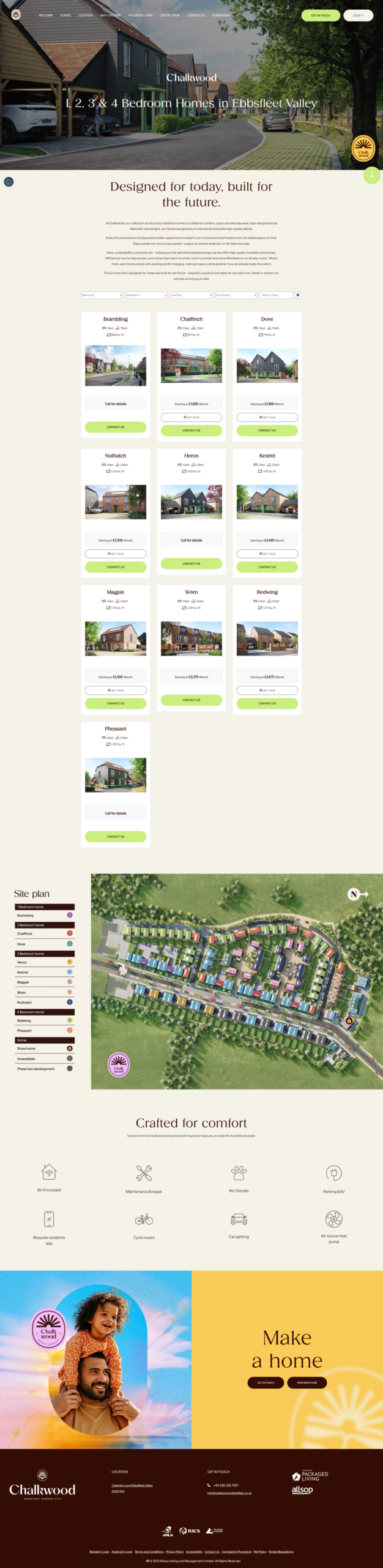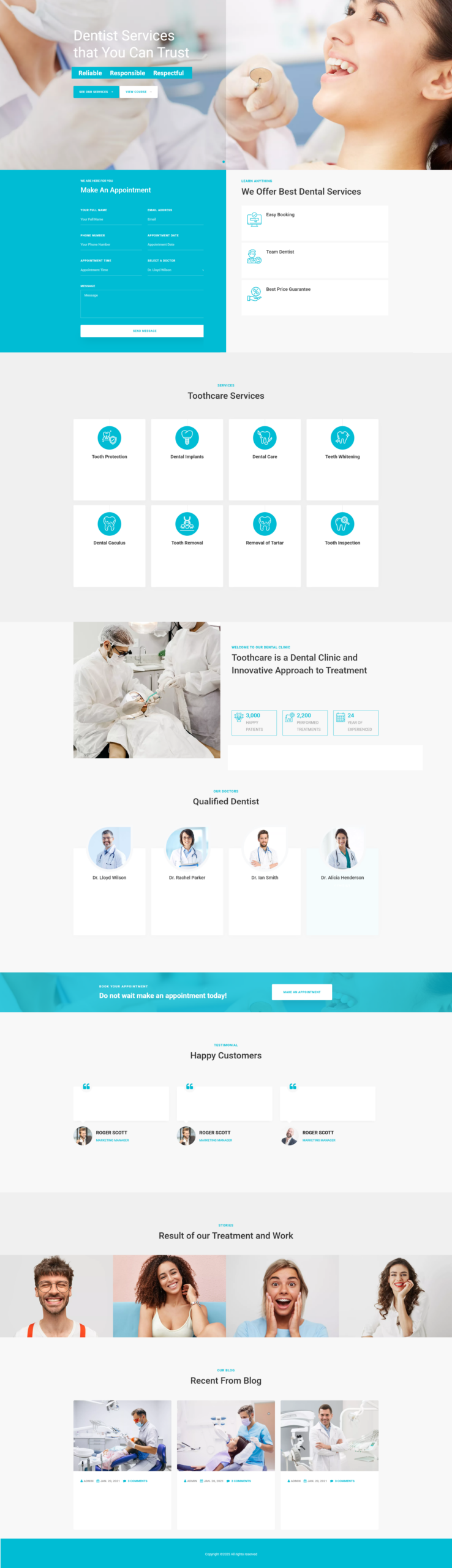 Footer: Bottom section with contact info, extra links, and copyright.